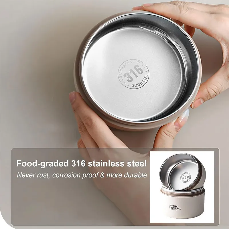 🥣 صحية 100%: مصنوعة من فولاذ مقاوم للصدأ 304 خالي من BPA وPVC – طعامك يبقى نقيًا وآمنًا لعائلتك.